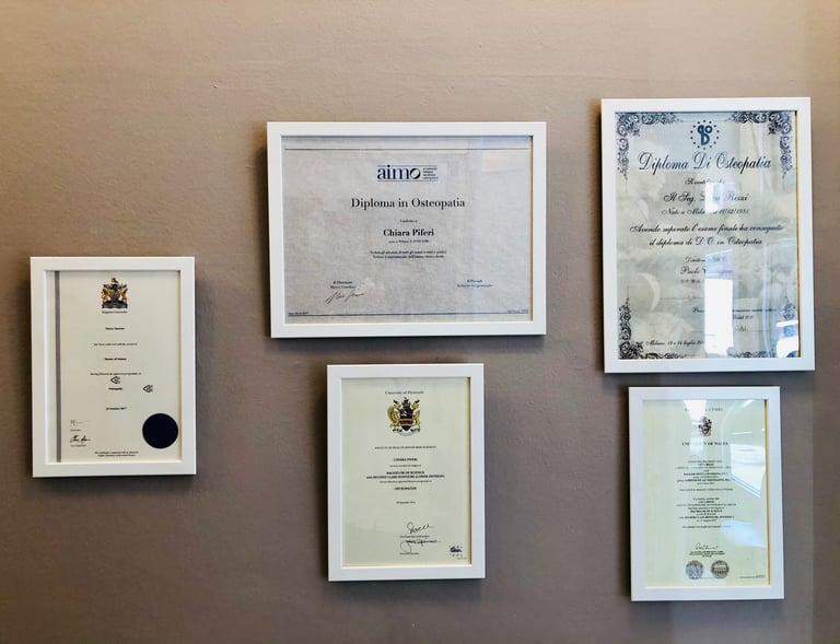 Mi sono Laureata nel 2013 conseguendo il Diploma in Osteopatia presso Aimo, Accademia Italiana Medicina Osteopatica, e nel 2014 ho conseguito il Bachelor degree of Science presso l’università di Plymouth.
